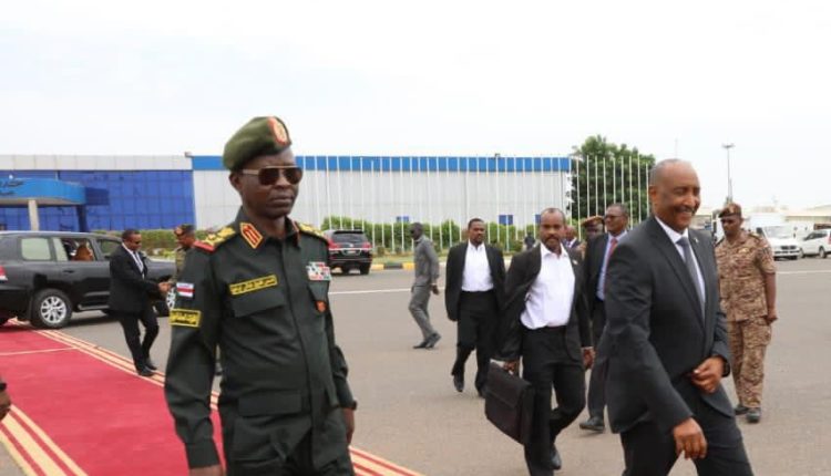 وكان في وداع البرهان بمطار الخرطوم اليوم عضو مجلس السيادة الانتقالي السوداني الفريق أول شمس الدين كباشي وهو يرتدي نظارته ويحمل في يده عصا، فيما ارسل البرهان إبتسامة عريضة للعالم قبيل إقلاع طائرته من مطار الخرطوم تجاه بريطانيا في إشارة إلى إن الجيش قد انسحب من العملية السياسية.